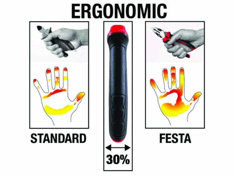 - o 30% více kontaktu s rukojetí, redukuje množství potřebné síly