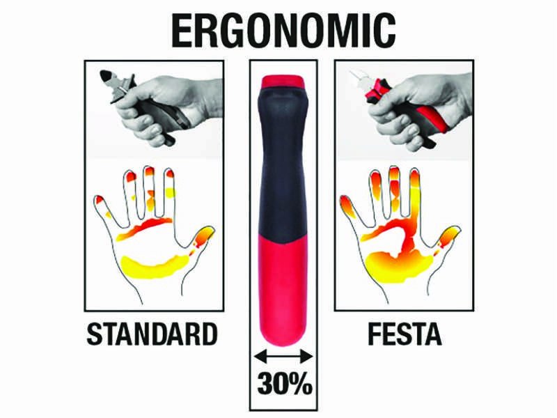 • o 30% více kontaktu s rukojetí, redukuje množství potřebné síly