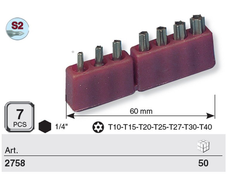 - 7-dílná sada bitů 1/4" Torx s otvorem