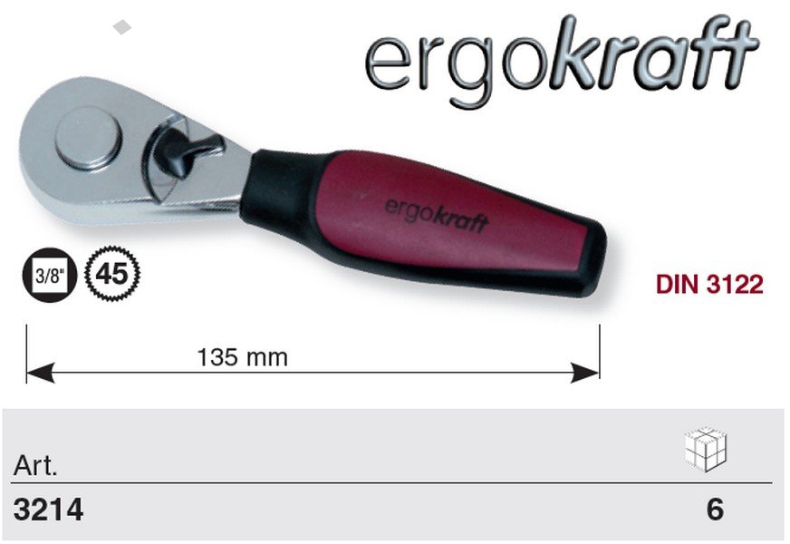 | Ráčna 3/8" 45 zubů STUBBY ergokraft PROFI Line |