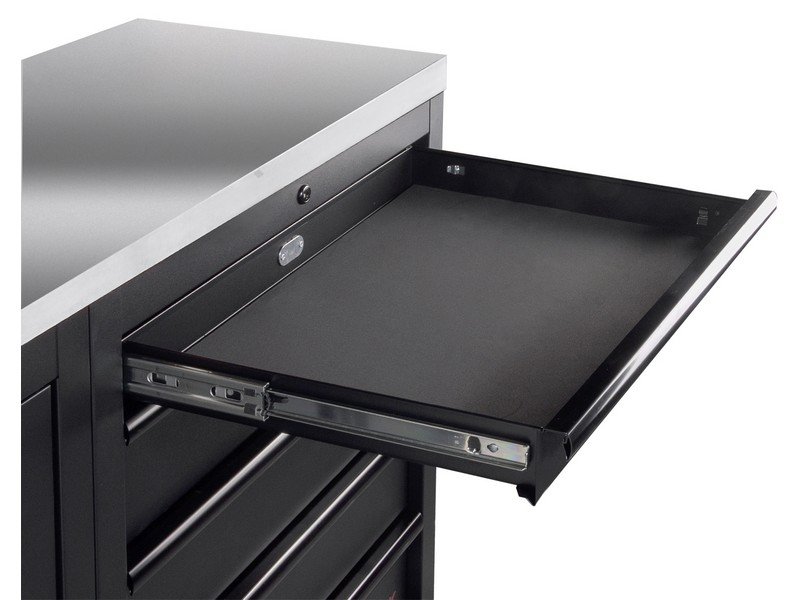AKCE KW Dílenský stůl 1360x458x948mm, 2 dveře + 5 zásuvek, deska NEREZ MOBILIO BLACK dílenský nábytek