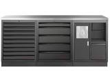 Dílenský stůl 2040x458x948mm, koš + 14 zásuvek + záda, deska NEREZ MOBILIO BLACK dílenský nábytek