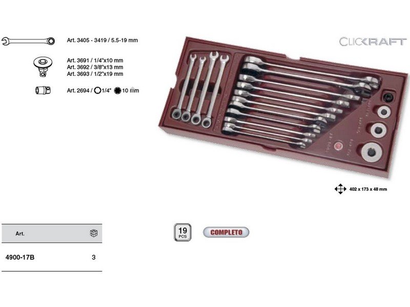 Sada klíčů ráčnových CLICKRAFT COMBINATION 19ks COMPLETO PROFI Line