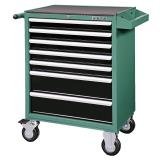 Kovový montážní vozík na nářadí se 7 zásuvkami. Dvě pevná a dvě otočná kolečka s poziční brzdou. Zásuvky na kuličkových ložiskách lze vysunout do 40cm. horní pracovní plocha i zásuvky jsou vypodloženy protiskluzovou podložkou. Součástí jsouuzamykatelné zásuvky. Má 5 nízkých a 2 vysoké zásuvky.