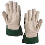 Kvalitní hovězí lícovka, hřbet ze zelené bavlny, teplá podšívka, zelená vyztužená manžeta