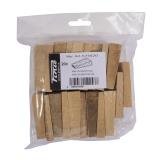 Dřevěné montážní klíny jsou vyrobeny z tvrdého dřeva a jsou vždy řezány ve směru vláken materiálu. Používají se jako dorazové klíny na parkety a k fixaci utahovacích mezer. Sada obsahuje 10 ks o rozměrech 57x34x5/10 mm a 10 ks o rozměrech 57x34x10/15 mm.