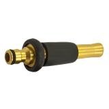 Mosazná postřikovací hubice k hadici se stavitelným průtokem vody.