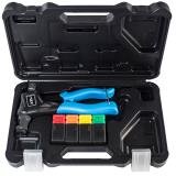 Nýtovací litinové kleště mají vysokotvrzenou ergonomickou konstrukci, jež je určena do těžkých provozů. Ocelová páka kleští a tvarovaná rukojeť snižují vynaložené úsilí při nýtování. Komfort při práci zajišťuje odolné lehké tělo z hliníkovéslitiny, tvrzené Cr-Mo čelisti, koncovky pro maticové nýty M3, M4, M5, M6 a klíč pro výměnu koncovek. Kleště jsou v plastovém boxu s nýtovacími nástavci.