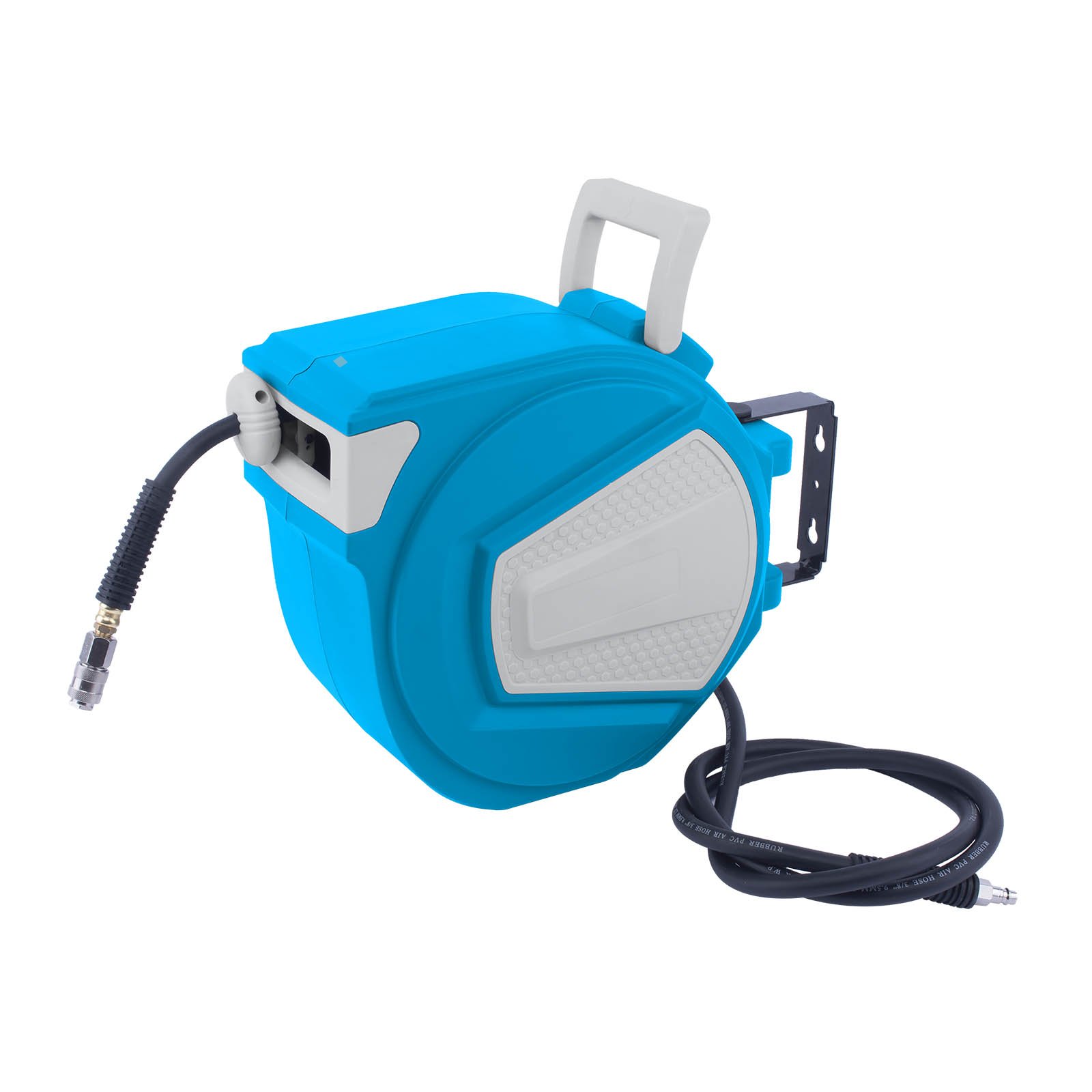 Naviják na vzduchovou hadici je výborným pomocníkem do každé dílny nebo garáže. Výhodou je snadné vytažení hadice na požadovanou délku a rovnoměrné navinutí zpět krátkým tahem. Kryt je vyroben z odolného plastu (PP), díky čemuž nabízí výbornou ochranu před vnějšími vlivy. Nástěnný držák s konzolí s rozsahem 180° nabízí skvělou mobilitu. Hybridní vzduchová hadice (3/8“) je díky kvalitnímu materiálovému složení odolná a zajišťuje dlouhou životnost.