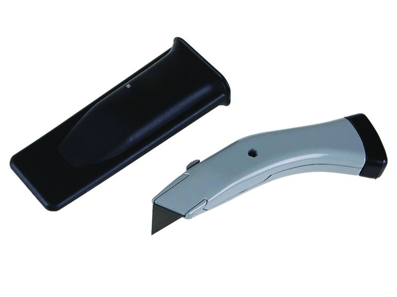 - kovový nůž s výsuvnou lichoběžníkovou čepelí - čepel uchycena uvnitř těla nože na posuvném jezdci - ergonomický tvar - dvoupolohová patka umožňuje snadné rozebrání a výměnu čepele - plastové pouzdro s klipem na opasek