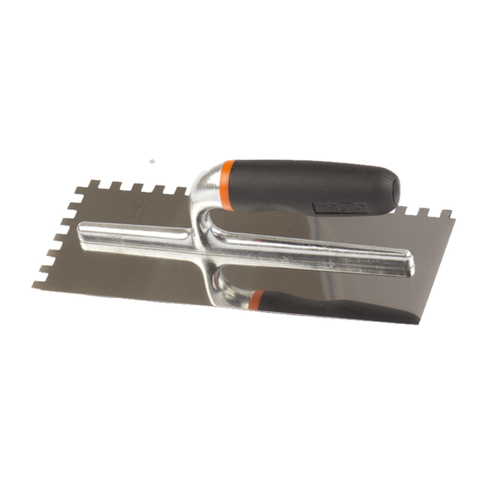 - nerezové zubové hladítko s gumovou ručkou - zub O16 - síla plechu 1mm - umožní natáhnout lepidlo či stavební hmotu v pruzích a výšce dle zubu hladítka - použití: nanášení lepidel pod obklady a dlažby, stěrek, štuků, omítek, tmelů a dalších stavebních hmot